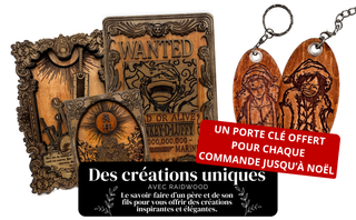 En plus des réductions spécialement pour les fêtes, un porte clé Luffy ou Zoro en bois est offert pour chaque commande🎄🎁 C'est gratuit !